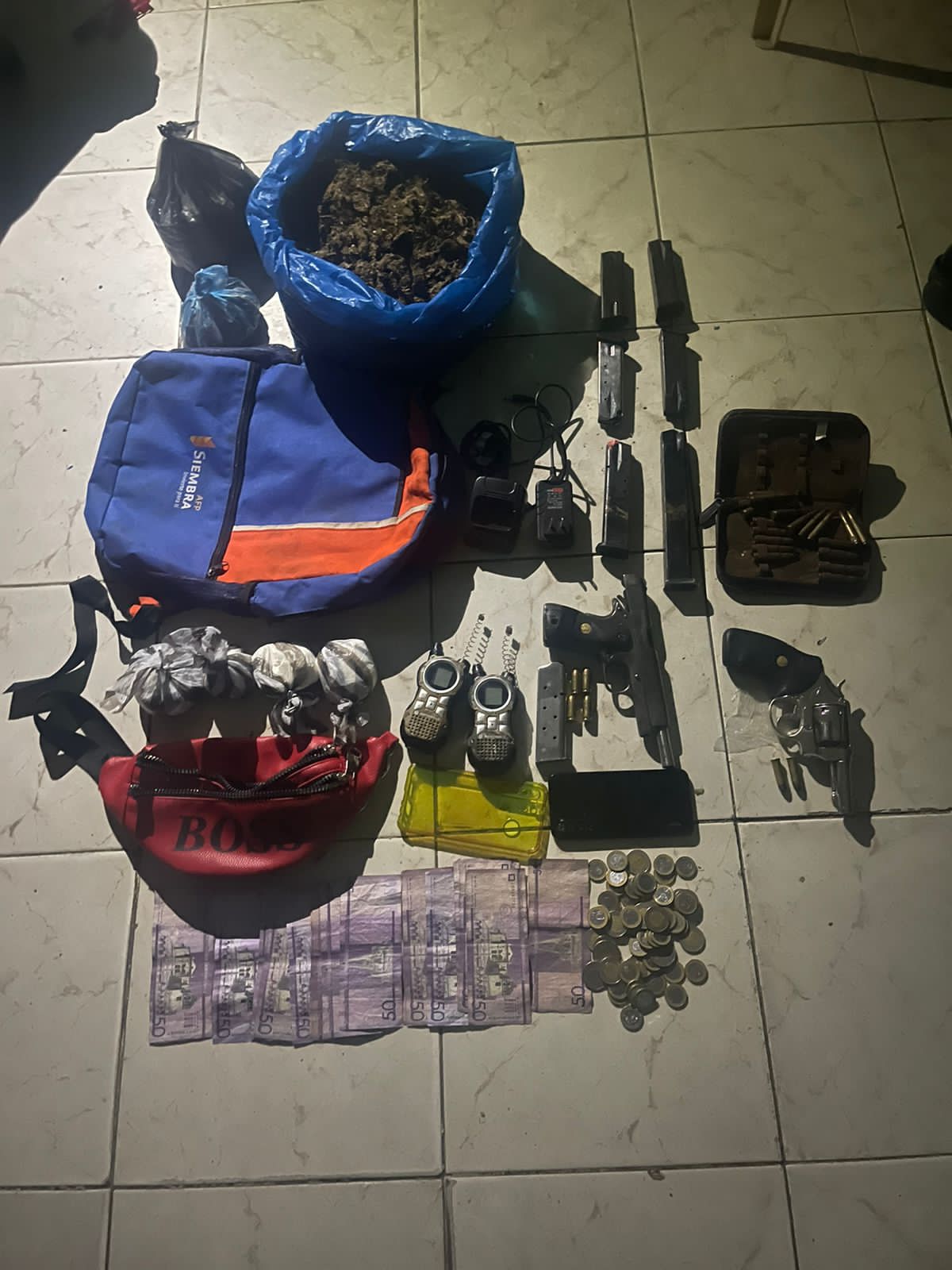 De igual manera, los agentes actuantes ocuparon seis cargadores para pistola calibre 9mm, dos radios tipo “Walkie Talkie”, un celular, la suma de 1,605 pesos en efectivo y una motocicleta marca Tauro, negra.