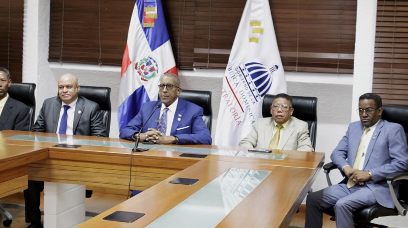 El contralor Santana García en su comparecencia estuvo acompañado de Francisco Tamárez Florentino, responsable de Auditorías; Rolando Saldívar Mota, director de Auditorías Especiales, y Cecilio Disla, director de Auditoría Interna.