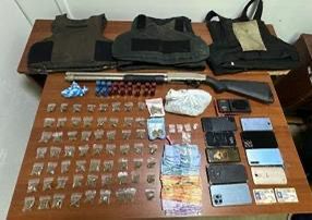 Agentes policiales de la subdirección de Inteligencia (DINTEL), en Santiago de los Caballeros, mediante allanamientos simultáneos, junto con representantes del Ministerio Público, arrestaron a siete personas, a quienes les ocuparon una escopeta sin documentos, chalecos antibalas, dinero en efectivo, sustancias ilícitas y motocicletas en diferentes sectores de esa provincia.
