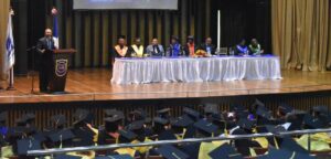 Además, de la Licda. Eunice Valera Tena, vicerrectora académica, Dra. Quenia Nolasco, directora de registro; Lic. César Pérez, director nacional de Extensiones Bíblicas-teológicas; y Janel Encarnación, Coordinador Nacional de Educación Permanente. Martín Mármol, presidente de la Junta Educativa; Juan Antonio Encarnación, Obispo del Caribe Hispano; Yony Samuel Paredes, Enlace de Educación; y el Dr. José Antonio Chery, orador principal de la graduación.