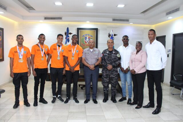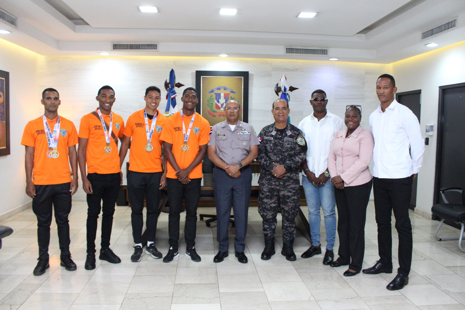 El mayor general Ramón Antonio Guzmán Peralta, director general de la Policía Nacional, recibió en su despacho a los integrantes de la cuarteta que obtuvo la medalla de Oro en el relevo 4×400 de los Juegos Deportivos Militares y Policiales.
