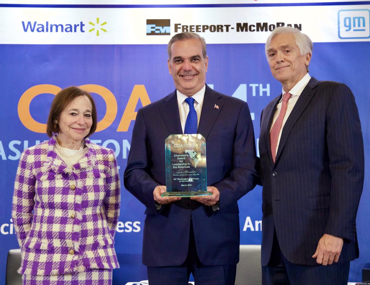 *Washington D.C. –* El presidente Luis Abinader recibió este miércoles el premio Chairman’s Award for Leadership in the Americas en la 54 Conferencia sobre las Américas, siendo el mandatario dominicano en recibir dicha distinción otorgado por el Consejo de las Américas.