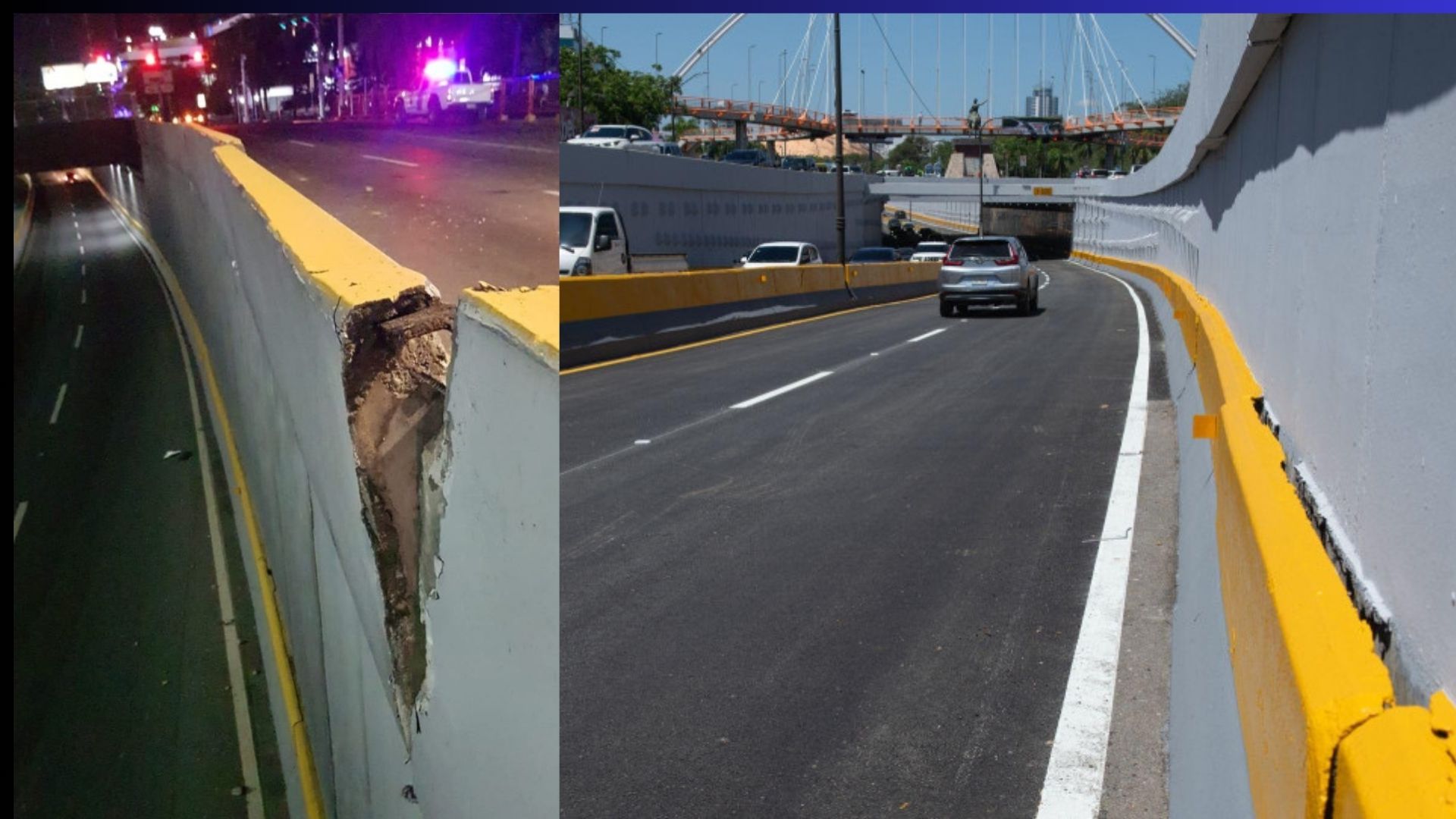 Explicó que, en horas de la noche del viernes 8 de diciembre del pasado año 2023, en el paso a desnivel de la avenida 27 de Febrero con Tiradentes un vehículo impactó una sección del muro tipo ´New Jersey´, ocasionando su desprendimiento en los laterales superiores.