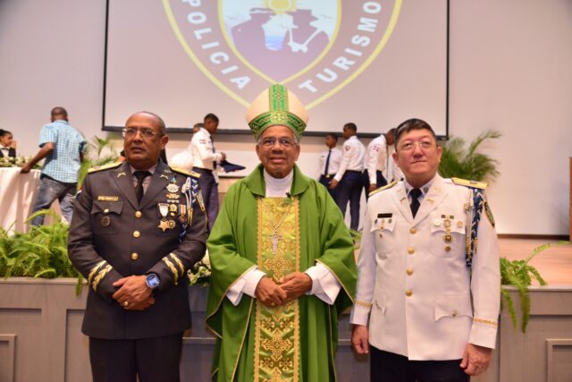 El auditorio de la Policía Nacional fue el escenario donde se realizó la ceremonia central, con una eucaristía presidida por monseñor Francisco Ozoria Acosta, Arzobispo Metropolitano de Santo Domingo.