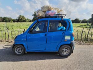 El vehículo marca *BAJAJ QUTE* , color Azul, placa A824210, era conducido por *José del Carmen Sánchez Bueno*, quien será presentado ante el *Ministerio Público* de Montecristi por transportar a extranjeros indocumentados.