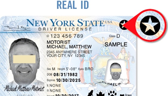 En Nueva York se identifican fácilmente por una estrella negra o dorada en la esquina superior derecha. Estas identificaciones son emitidas solo por el DMV.