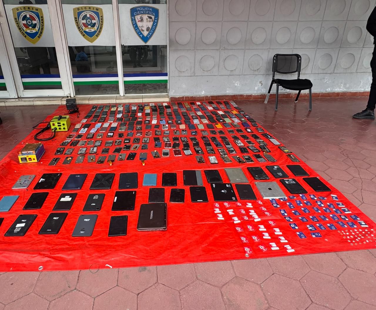 Durante la intervención, autorizada mediante la orden judicial No. 2025-AJ0047342, se incautaron 155 celulares, 93 pantallas usadas, 47 tarjetas internas, 17 carcasas, 31 tabletas, una mini laptop, dos máquinas para desarmar teléfonos, 65 chips nuevos y 77 chips usados, de diferentes compañías telefónicas.