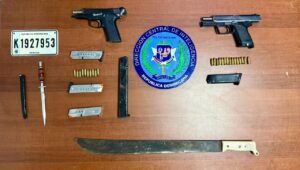 En el sector Semillero II, Santiago Oeste, fue arrestada Yadira Hernández Martes, en cuyo poder se ocupó una pistola Smith & Wesson calibre 9mm con documentos vencidos, cuatro cargadores, diez cápsulas, un arma blanca, una placa de motocicleta robada y varias porciones de alambre de cobre que no pudo justificar.