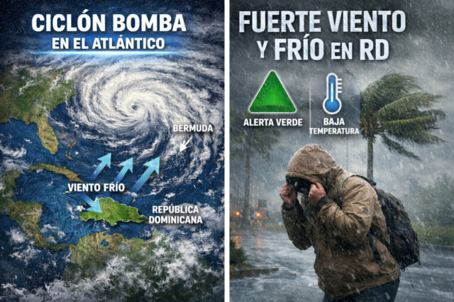 Santo Domingo.– El fuerte viento y el aire frío registrados en las últimas horas en suelo dominicano están asociados a la presencia de un llamado «ciclón bomba«, ubicado en el norte del Atlántico, al este de Estados Unidos.