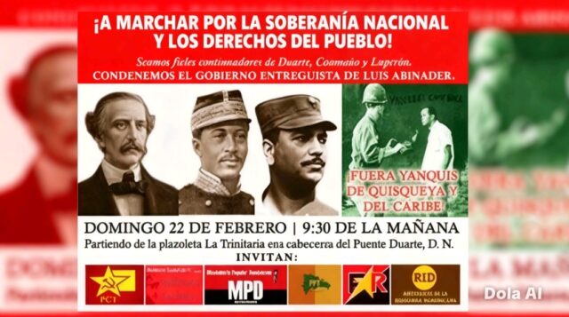 En una nota de prensa, el Partido Comunista del Trabajo (PCT), Movimiento Popular Dominicano (MPD), Movimiento Caamañista (MC), Fuerza de la Revolución (FR), Partido Patria Para Todos/as (PPT) y el Referente de la Izquierda Dominicana (RID) reiteraron que, en la marcha, además del rescate de la soberanía nacional, demandarán el derecho a la autodeterminación, así como los derechos sociales, económicos, políticos, y culturales del pueblo dominicano.