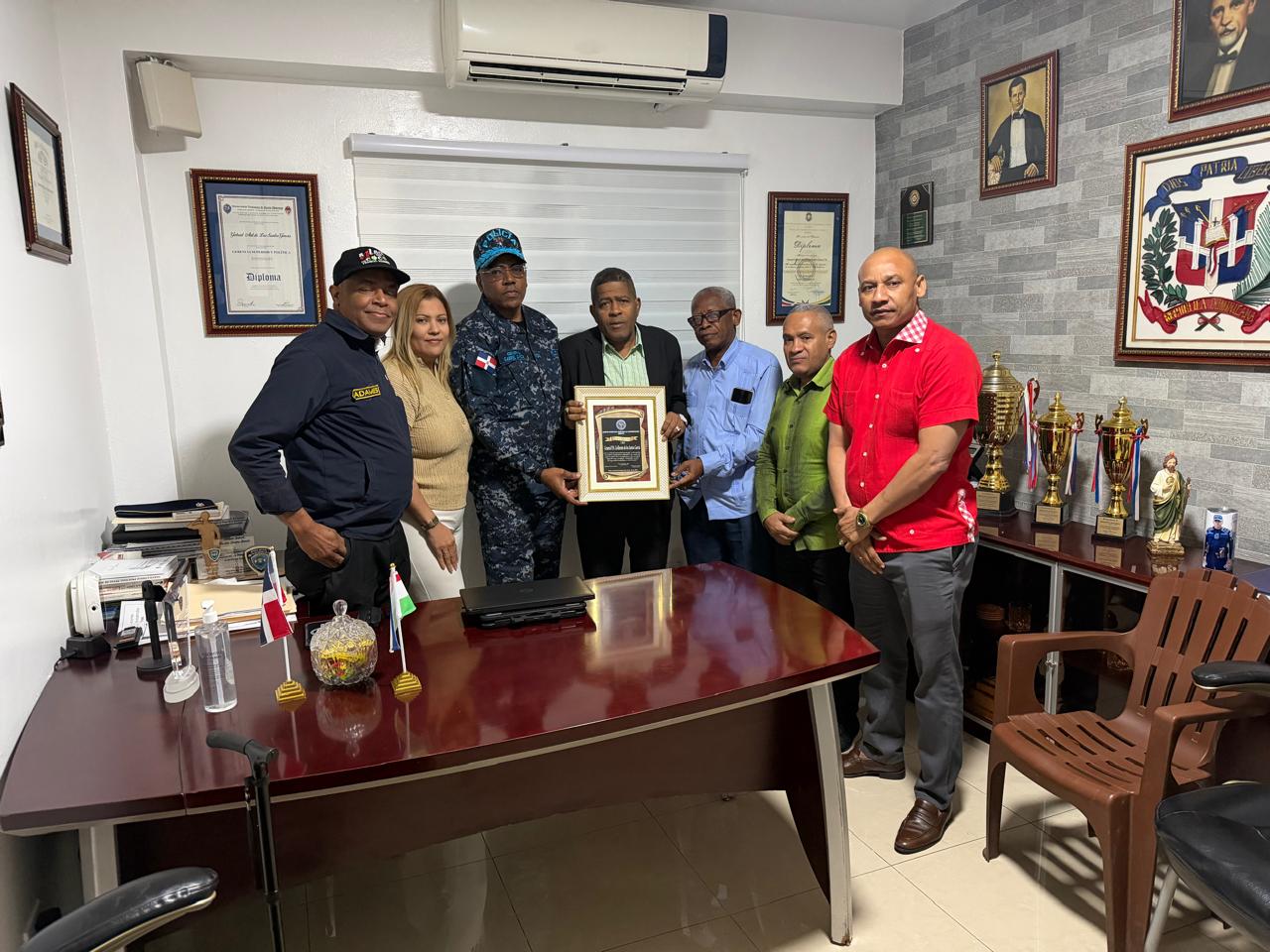 El homenaje fue realizado en el despacho del alto oficial, y contó con la presencia de los demás directivos de la entidad, entre ellos el periodista y escritor Armando Nolasco; la empresaria Marlen Bueno; el locutor Francis Adames, así como Junior González, presidente de la Unión Nacional de Centros Nocturnos, y Piro, comerciante y dirigente comunitario del sector Villa Juana.