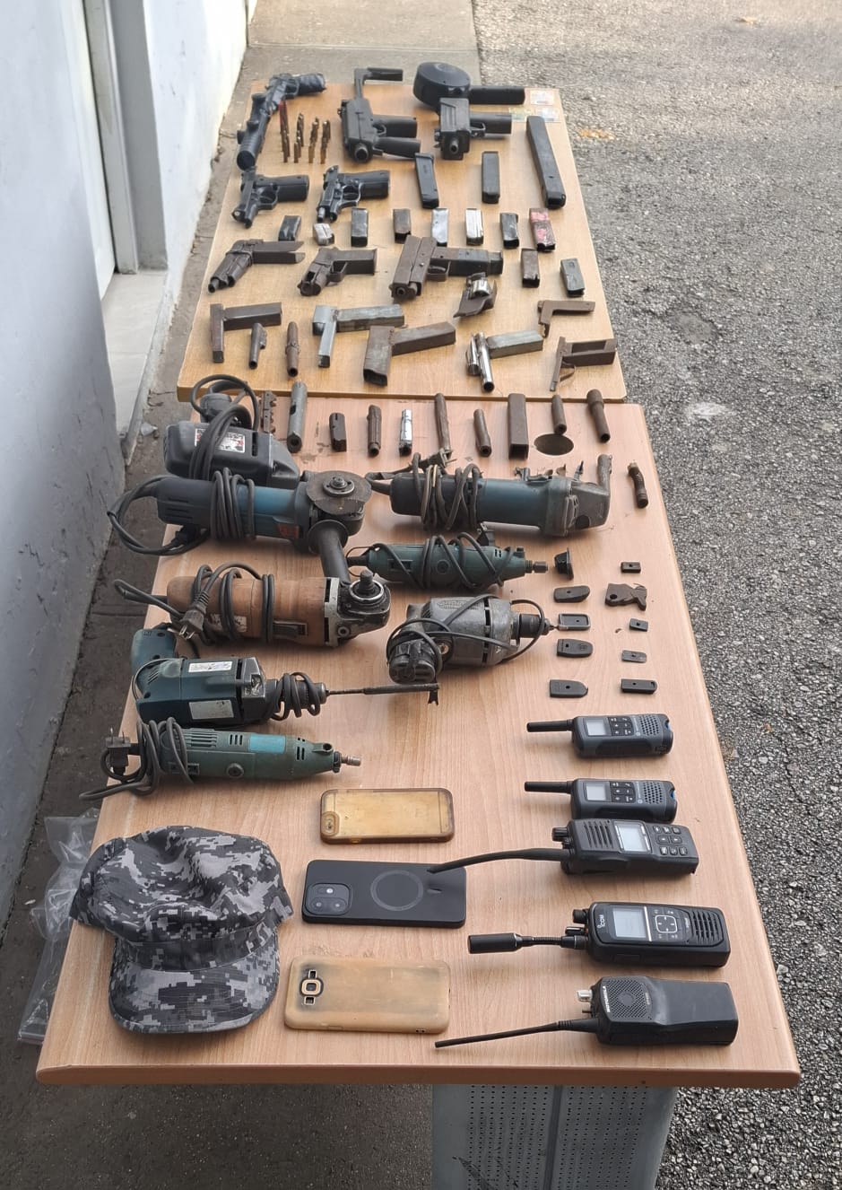 Además, las autoridades incautaron tres motocicletas, seis chasis de pasola y más de treinta piezas para armas de fuego, cuyo origen es investigado por las autoridades.