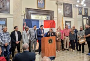 El ejecutivo municipal estuvo acompañado por la vicealcaldesa Elsa Mantilla, quien expresó su agradecimiento a la prensa dominicana por su presencia y cobertura en el desfile dominicano de la ciudad.